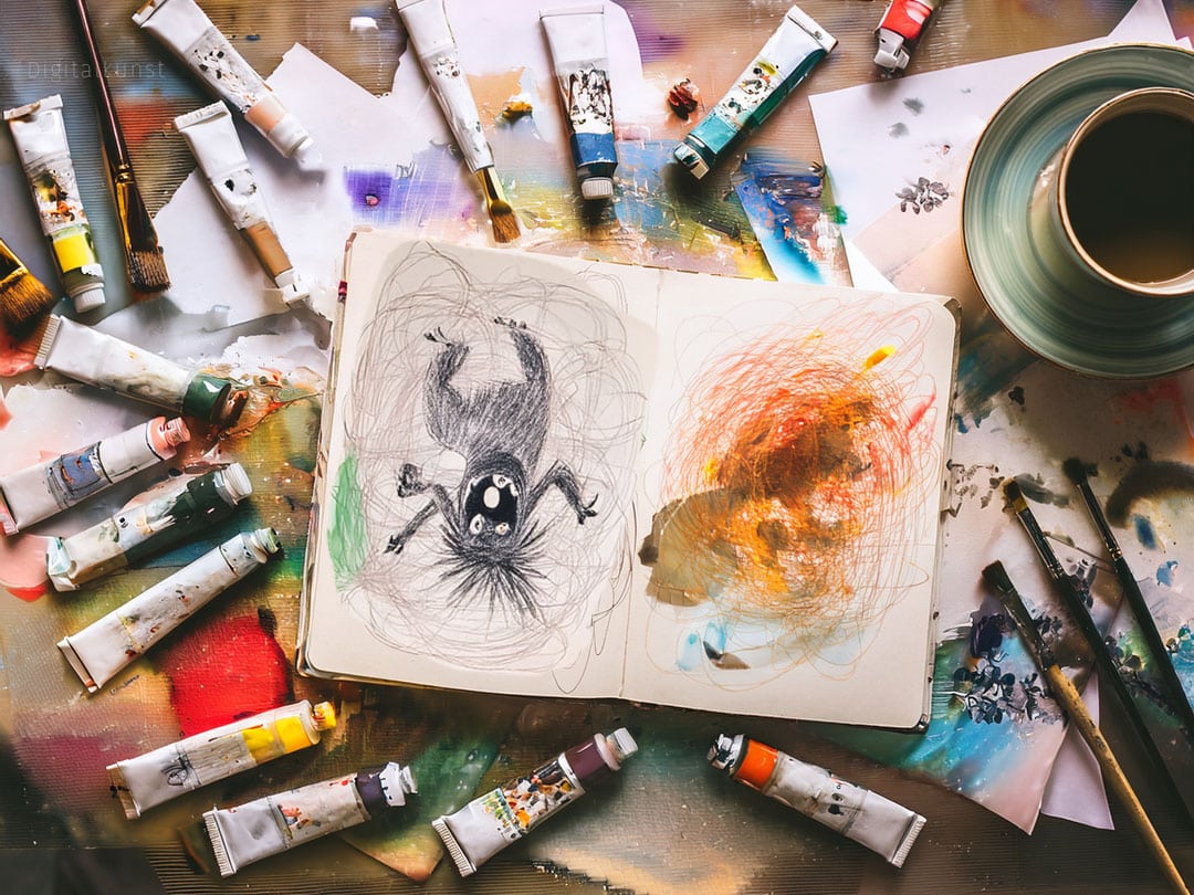 Erlebe, wie aus Worten und „Spinnereien“ … Zeichnungen oder Malereien entstehen.