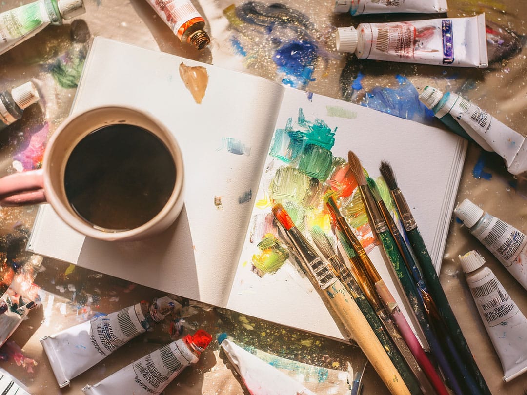 Am besten Kleidung, die auch mal einen Farbspritzer verträgt. Kreativität kann manchmal etwas „wilder“ werden – zieh Dich so an, dass Du Dich frei bewegen kannst.